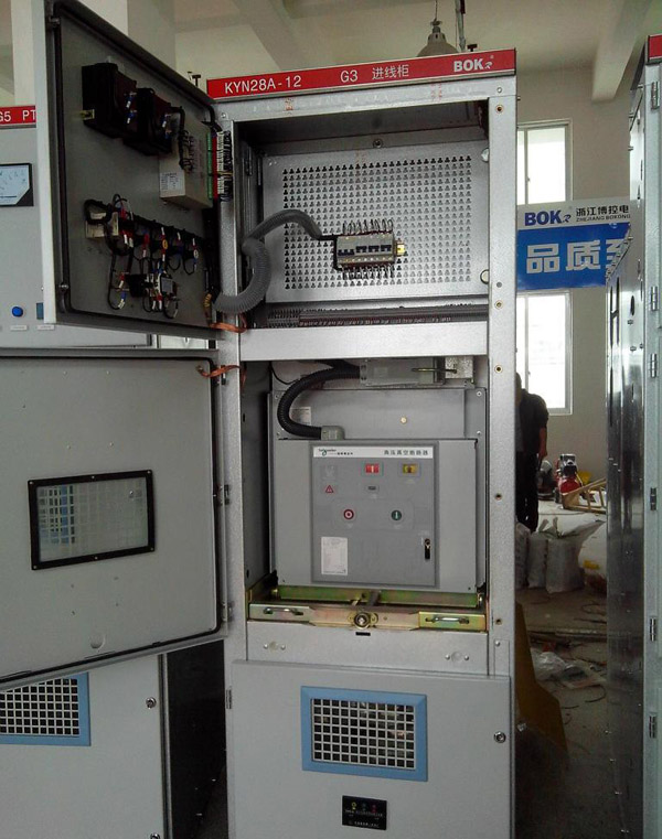 KYN28(GZS)型戶內(nèi)金屬鎧裝抽出式開關(guān)設(shè)備(以下簡稱開關(guān)設(shè)備)。該開關(guān)設(shè)備系3-10KV三相交流50Hz單母線分段系統(tǒng)的成套配電裝置。主要用于發(fā)電廠、中小型發(fā)電機(jī)送電、工礦企事業(yè)配電以及電業(yè)系統(tǒng)的二次變電所的受電、送電及大型高壓電動機(jī)起動等,實(shí)行控制保護(hù)、監(jiān)測之用。具有防止帶負(fù)荷推拉斷路器手車、防止誤分合斷路器、防止接地開關(guān)處在閉合位置時關(guān)合斷路器、防止誤入帶電隔室、防止在帶電時誤合接地開關(guān)的聯(lián)鎖功能,既可配用VS1真空斷路器,也可配用ABB公司的VD4真空斷路器,是一種性能優(yōu)越的配電裝置。